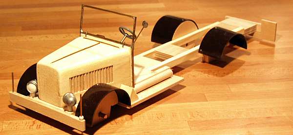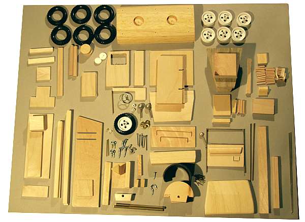 Alle Teile sind vorgefertigt und ausgesägt. Die Felgen sind aus Kunststoff oder Zinnguss, die Reifen aus Gummi, die Aufbauten aus Birkenholz und Kiefernleisten. Die Modelle sind naturbelassen, damit jeder seinem Modell ein individuelles Aussehen geben kann. Farben sind nicht im Lieferumfang. Die Fotos zeigen zum Teil Dekorationen wie z.B. Figuren oder Gleise oder Fahrzeuge usw... --sicher ist Ihnen klar, dass wir nur die Bausätze ohne solche DEKO liefern.