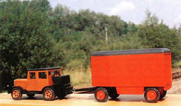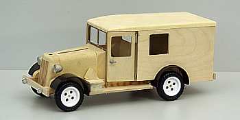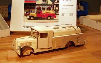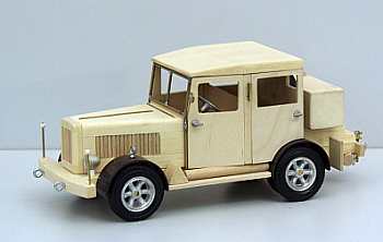 All parts are prefabricated and sawn out. Rims are made of cast tin, tires of gum and the construct of birch and pine. Each of the unpainted models may be colored individually to give it a personal touch.
