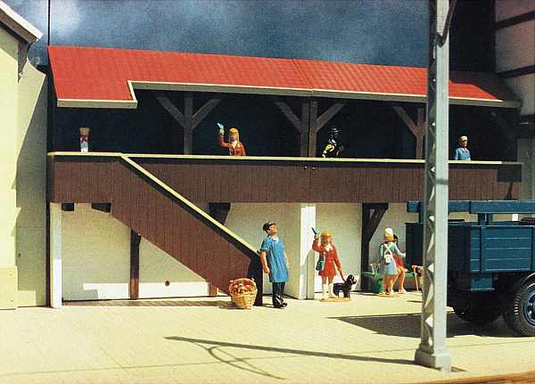 Most parts of the construction kits are made of plywood and pine wood strips with different textures giving the buildings a natural look. All parts are produced precisely to scale to allow easy assembly. Each of the unpainted models may be colored individually to give it a personal touch.  With appropriate painting the models are weatherproof. Outside buildings must be protected however from "rising wetness". Paint is not included.